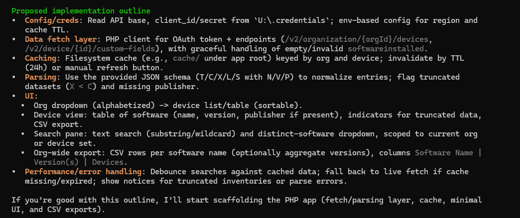 Thirty minutes ago, I was building a custom tool. I needed my business software to produce a report it doesn't offer—nothing exotic, just a way to see what's installed across the computers I manage for clients. The software can't do it, so I asked an AI to build me something that could.